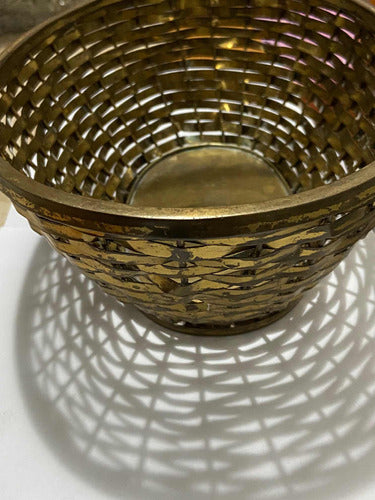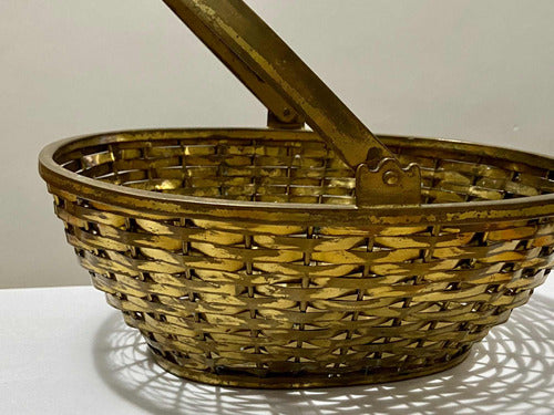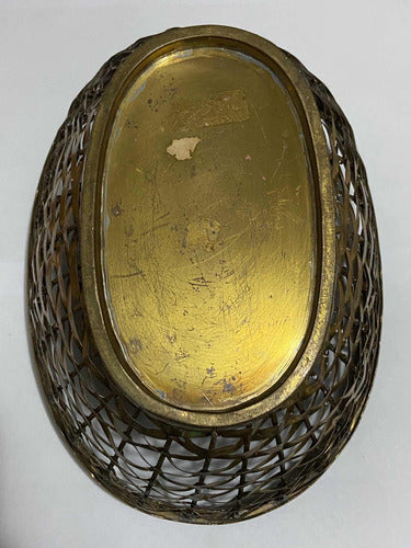 Antiga Cesta De Metal Com Alça Cor Dourada