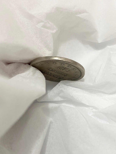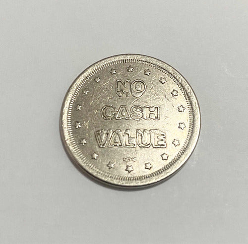 Esta é uma ficha de fliperama (arcade) ou de máquina de jogos, com a frase "NO CASH VALUE" (SEM VALOR EM DINHEIRO) gravada em seu centro.