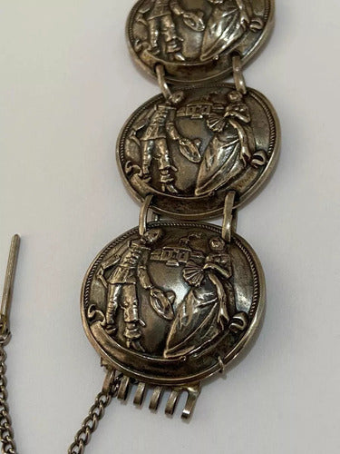 Antiga Pulseira Bracelete Cor Prata Desenho Dama Cavalheiro