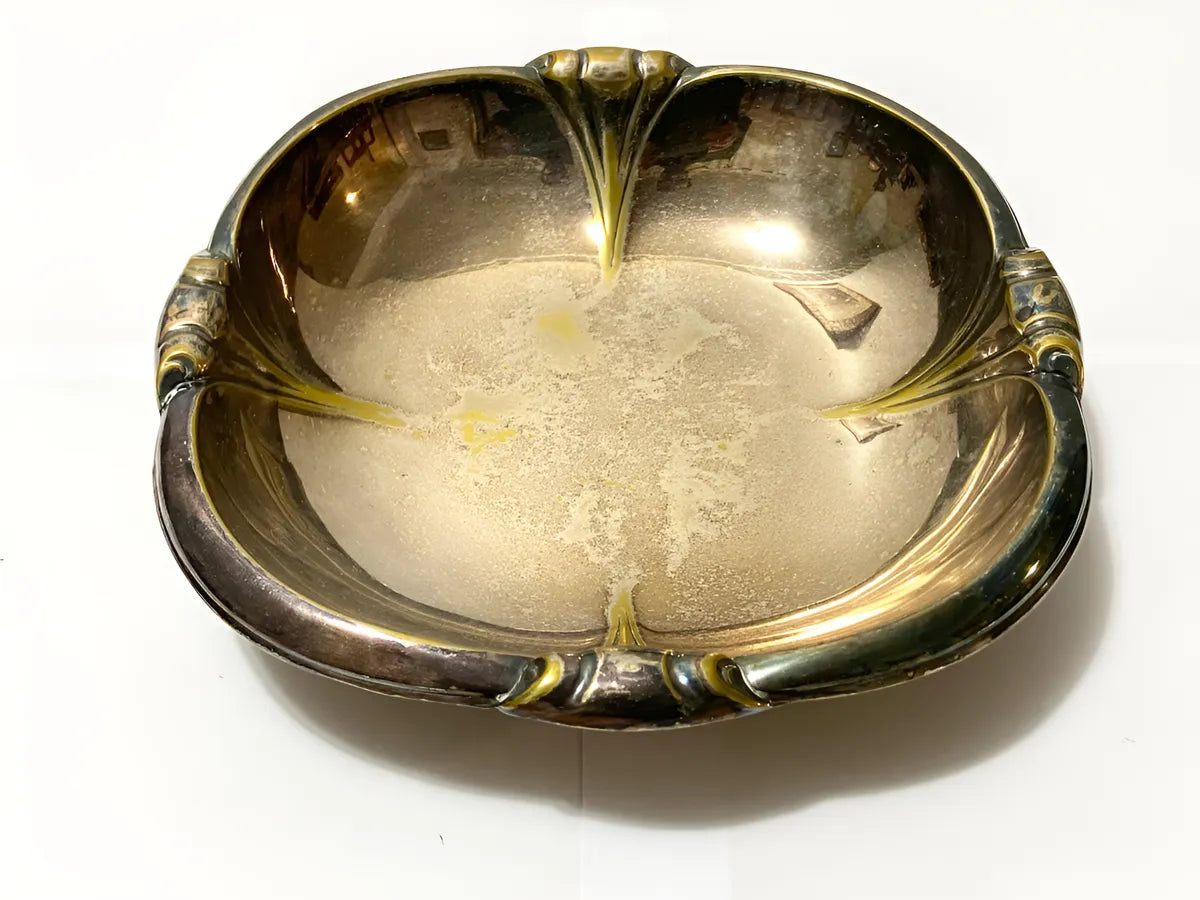Elegante centro de mesa antigo da marca Wolff, tradicional fabricante de artigos em prata e metal prateado. A peça possui formato arredondado, com bordas trabalhadas e design clássico, ideal para uso como fruteira, centro de mesa ou objeto decorativo.