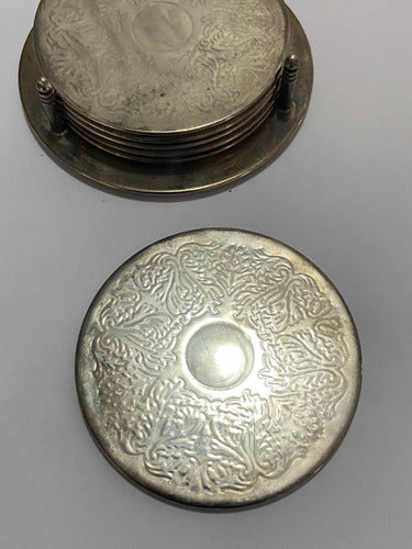 Antigo Porta Copos Em Metal Espessurado A Prata Com Seis Uni