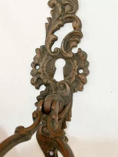 Antigo puxador de guarda roupas. Peça centenária. O item é bem trabalhado com desenhos em alto relevo