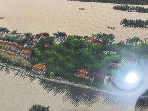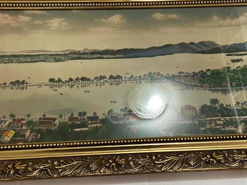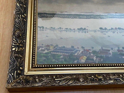 Quadro Antigo Vista Panorâmica em Tecido com Moldura Dourada