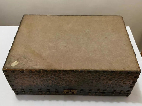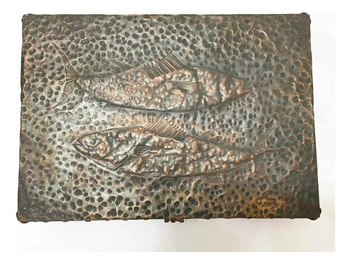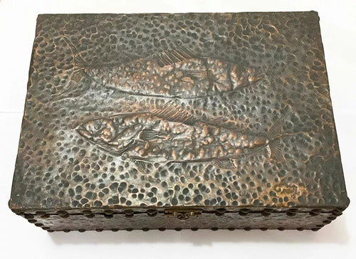Caixa Antiga Cobre Repuxado Com Detalhe Peixes - Assinada