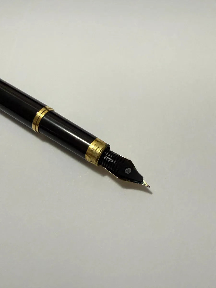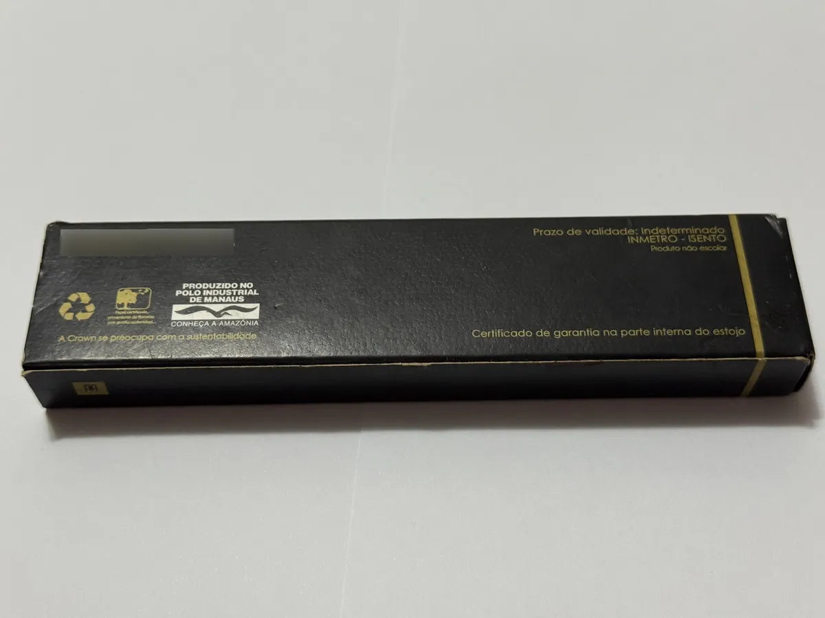 Caneta tinteiro Crown original, corpo preto com detalhes dourados.
