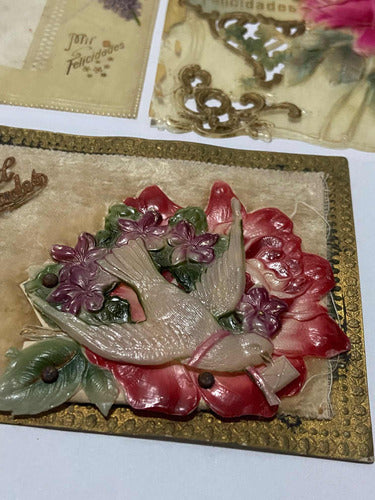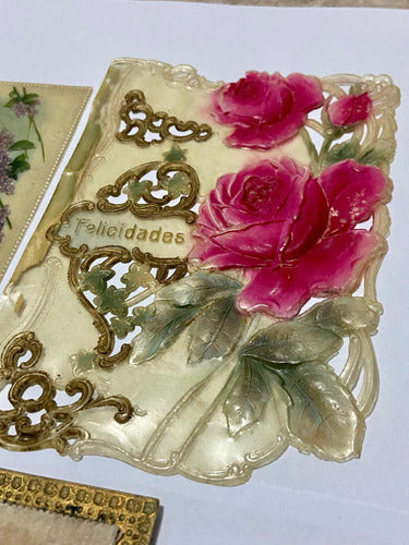 Cartão Postal Bilhete Antigo Flores Rosas Em Relevo