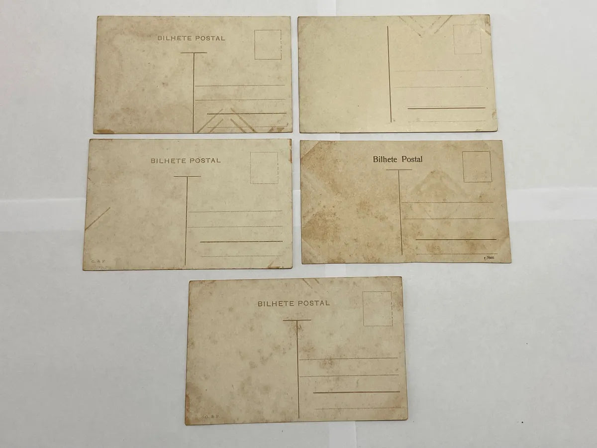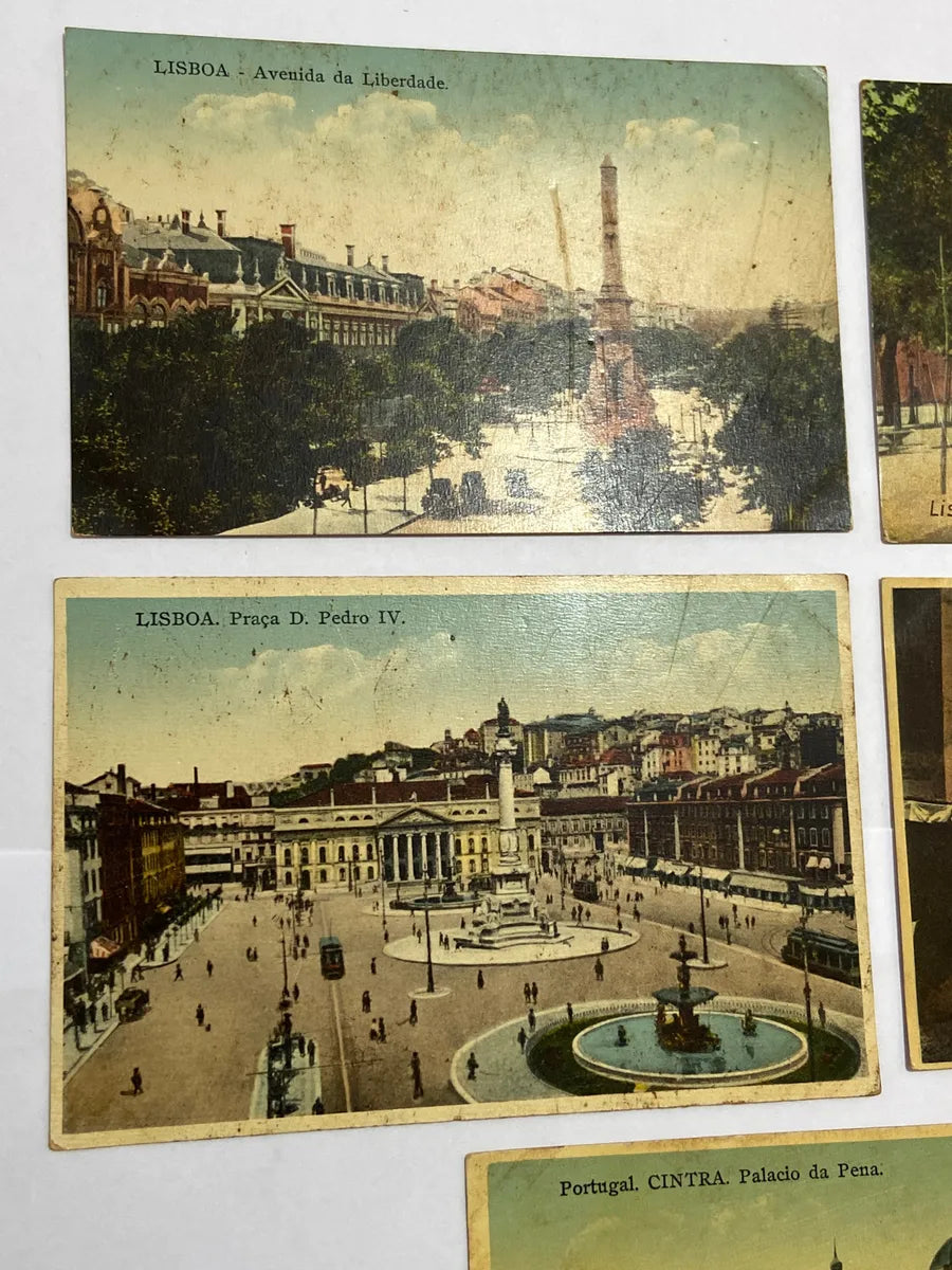 Lote com 5 belíssimos cartões postais antigos retratando pontos turísticos históricos de Portugal, com destaque para Lisboa e Sintra. Todos os postais possuem a inscrição "Bilhete Postal" no verso, indicando sua origem e autenticidade como peças de época.