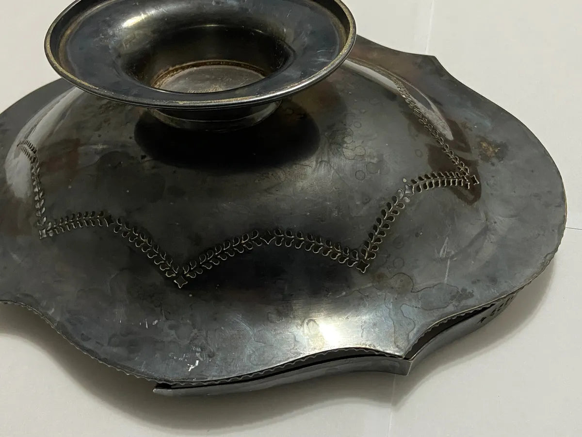 Peça antiga e refinada da prestigiada marca britânica Mappin & Webb Ltd, fabricada em "Princes Plate", uma forma de banho de prata de alta qualidade. Esta elegante cesta decorativa apresenta um design clássico com bordas onduladas, acabamento vazado no fundo em formato de coroa estilizada e alça móvel ornamentada, que adiciona charme e funcionalidade.