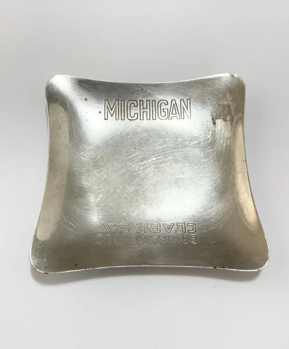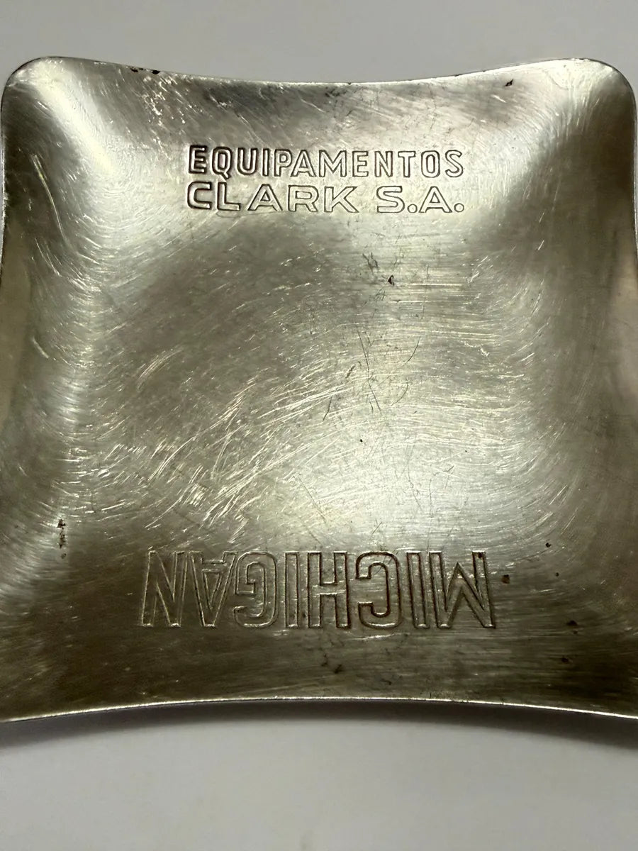 Cinzeiro vintage promocional da Equipamentos Clark S.A., com gravação “Michigan”. Produzido em alumínio, peça de época.