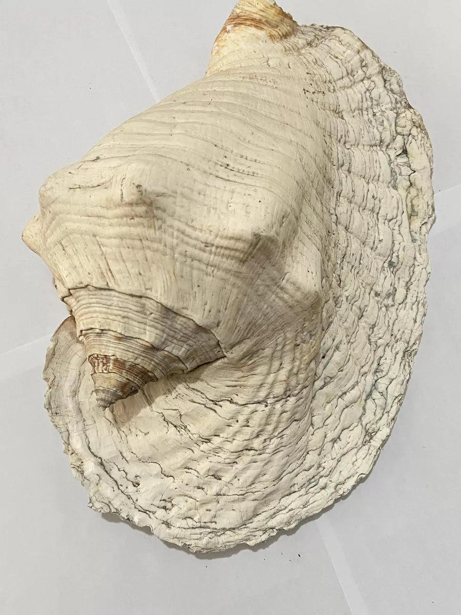 Ideal para decoração praiana, coleções de conchas ou uso como centro de mesa em ambientes sofisticados. A estrutura robusta e os tons esbranquiçados com nuances alaranjadas destacam sua origem oceânica autêntica.