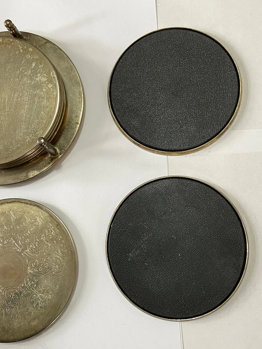 Conjunto Antigo De Porta Copos Em Metal Espessurado a Prata