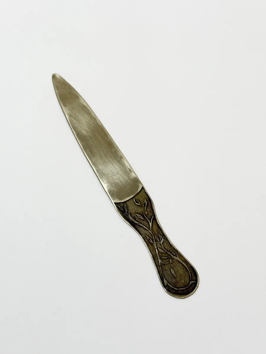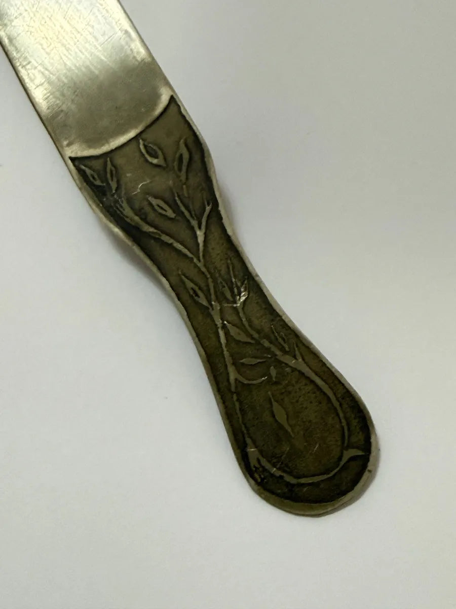 Faca Antiga Decorada Em Relevo Floral - 15,5cm Prateado