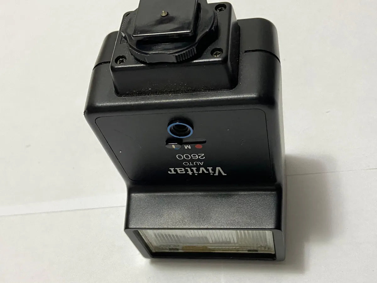 Flash Vivitar Auto 2600, modelo clássico ideal para colecionadores ou uso em câmeras analógicas.