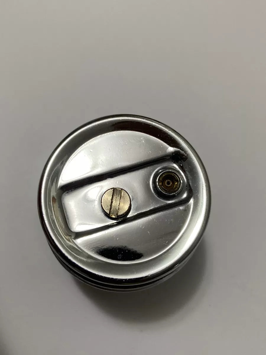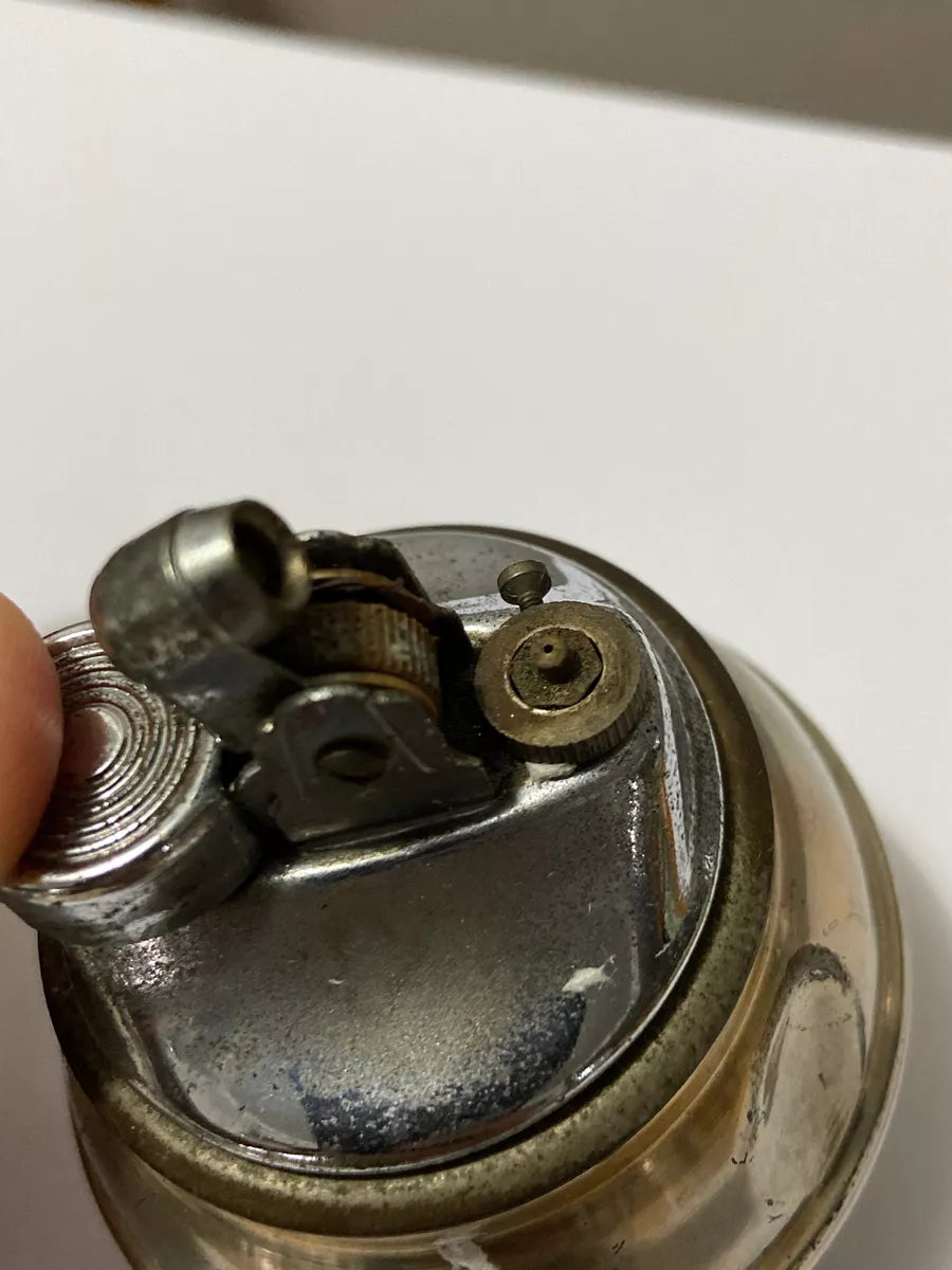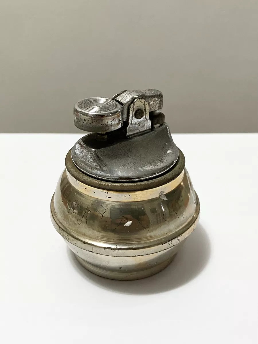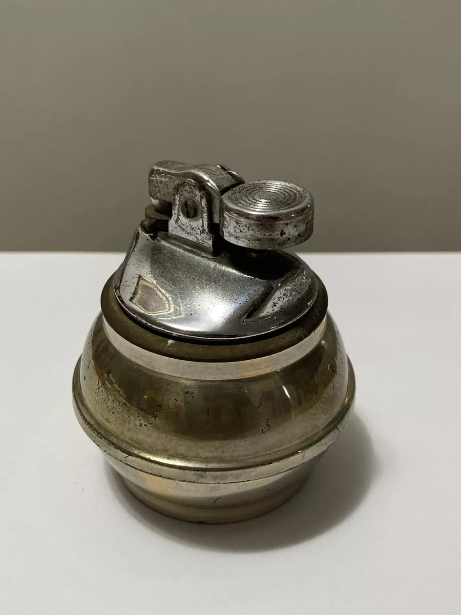Possui um mecanismo clássico de roda e pederneira para acendimento. Seu design arredondado e compacto sugere que foi projetado para uso decorativo e funcional, provavelmente da metade do século XX.