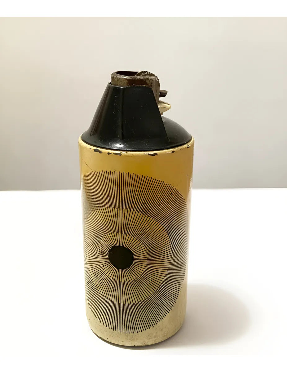 Peça colecionável, com design cilíndrico e mecanismo clássico de roda.