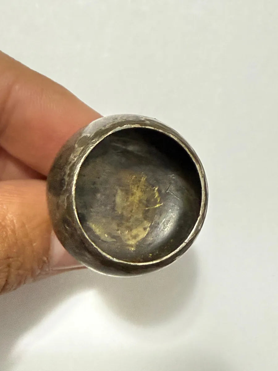 Mini escultura antiga em metal prata, com cachorrinho em destaque e base trabalhada.
