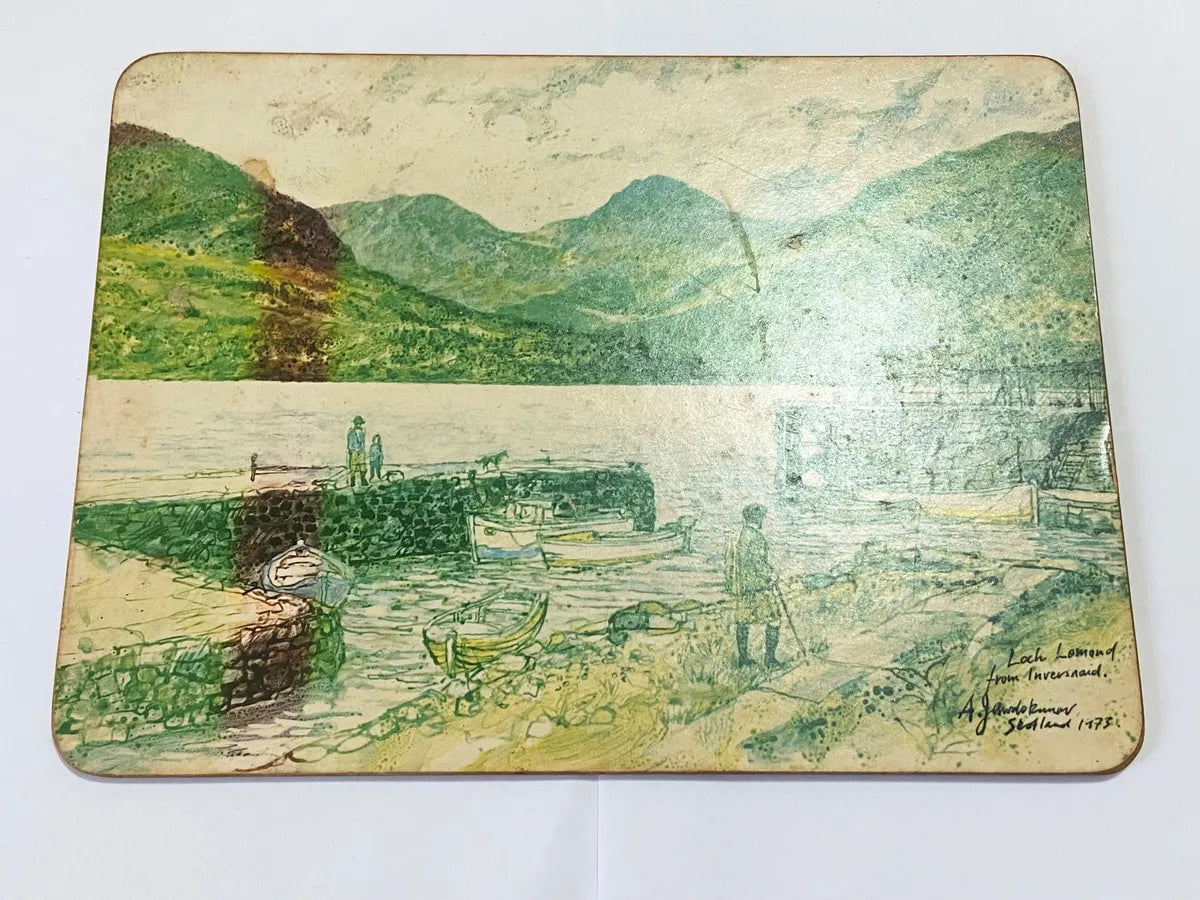 Assinada por Alex Jawdokimov, renomado artista conhecido por suas ilustrações românticas e paisagens britânicas, datada de 1973. Esta placa retrata a belíssima vista de Loch Lomond a partir de Inversnaid, na Escócia — uma das regiões mais emblemáticas das Highlands escocesas.
