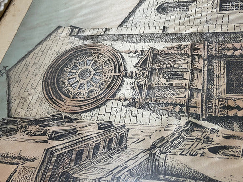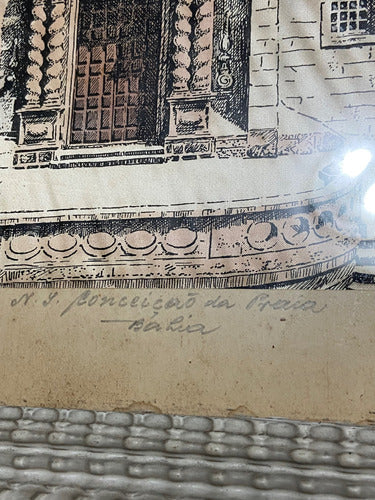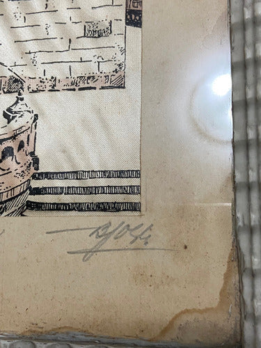 Quadro Antigo Pintura Sobre Seda Igreja Assinado Com Vidro