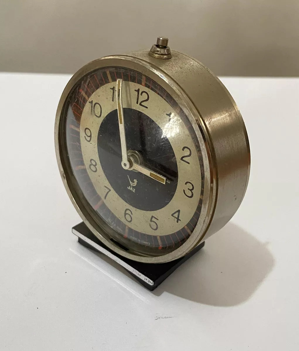 Relógio Despertador Antigo Francês Jazz 1970 Preto E Prata