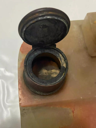 Tinteiro Antigo Em Mármore Escultura De Elefante Em Bronze