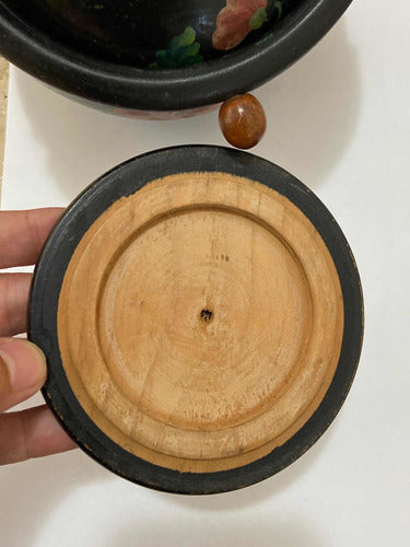 Vaso Antigo Pote De Madeira Com Pintura Flores