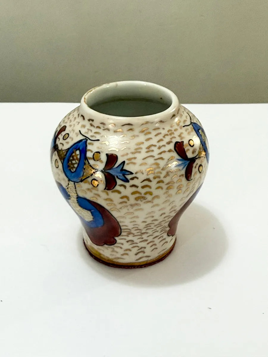 Vaso Mini Porcelana Antigo Pintado À Mão Assinado